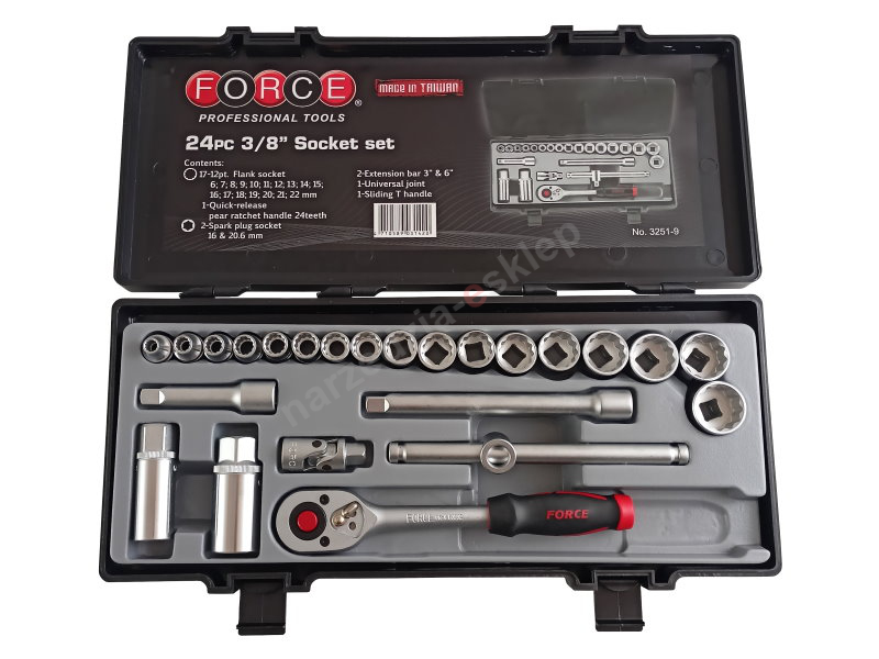 Zestaw nasadek 12-kątnych 3/8" i akcesoriów 24el. Force 3251-9.
