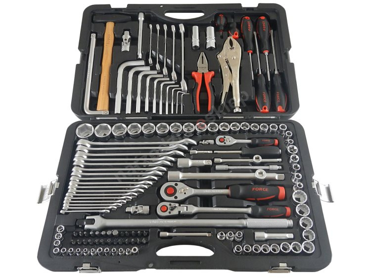 Rozbudowany zestaw nasadek (1/4, 3/8, 1/2") i narzędzi Force 41421.